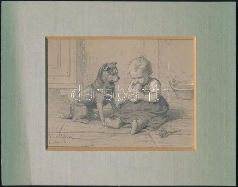 Beschreibung: cca 1861 Azonosítatlan jelzéssel: Kenyeret majszoló. Ceruzarajz. Paszpartuban 16x12 cm