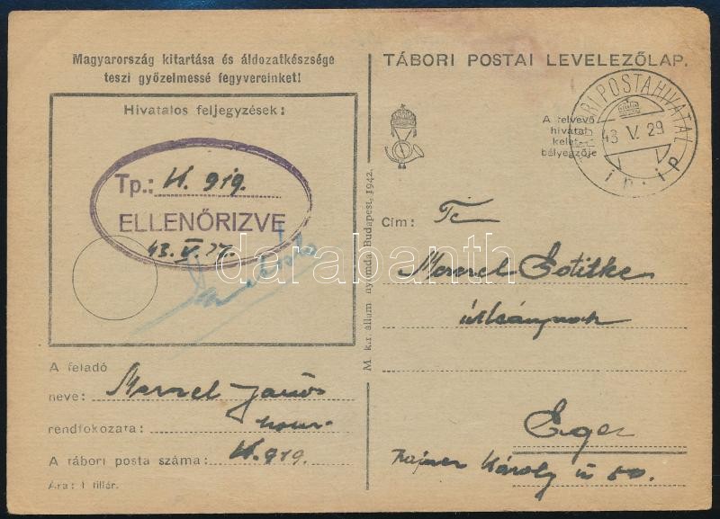 Beschreibung: 1943 Egyedi rajzos tábori posta levelezőlap az orosz frontról