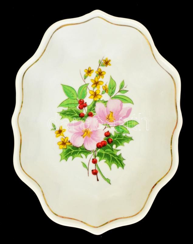 Beschreibung: Hollóházi virág mintás tál, matricás, jelzett, hibátlan, 18×14 cm