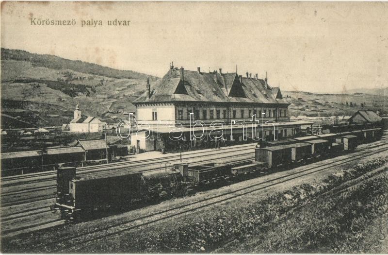 Beschreibung: Kőrösmező, Jaszinya, Yasinia; vasútállomás vagonokkal / Bahnhof / railway station with wagons (fl)