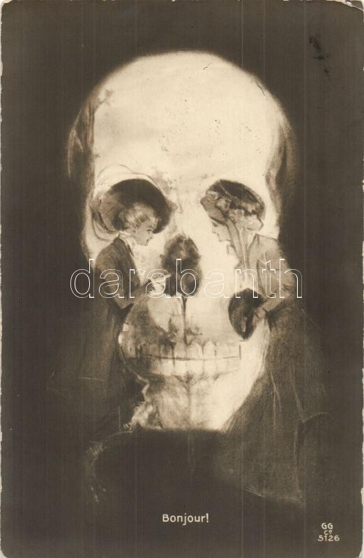 Bonjour! / bizarre optical illusion, ladies, skull. GG. Co. 5126. (EK) https://www.darabanth.com/de/314-Fernauktion/314.0/Ansichtskarten/Kunstlerkarten~400086/Bonjour-bizarre-optical-illusion-ladies-skull-GG-Co-5126-EK~II1723551