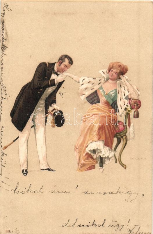 Beschreibung: Magyar tiszt a bálban / Hungarian military officer at the ball. Kosmos 198. litho s: Geiger R. (EK)