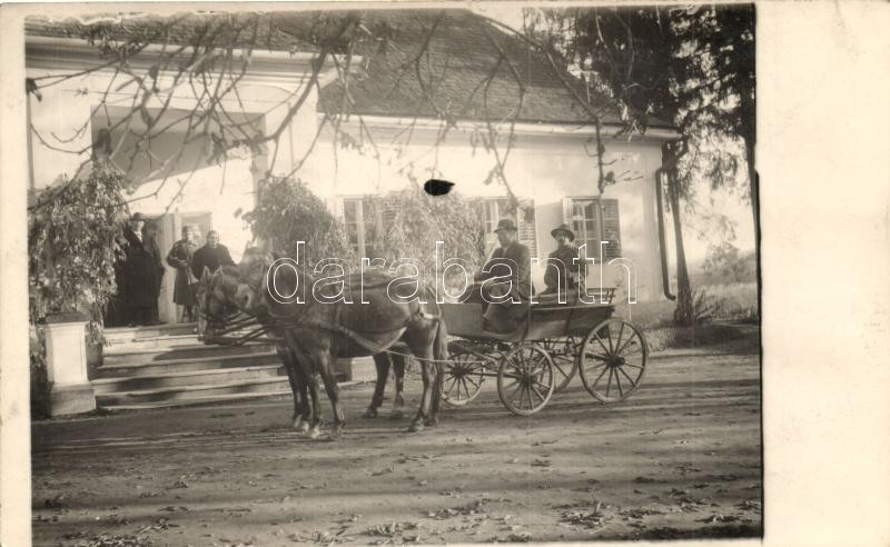 Beschreibung: 1940 Nagysajó, Sieu; kastély katonával, lovas szekér / castle with soldier and horse cart, photo