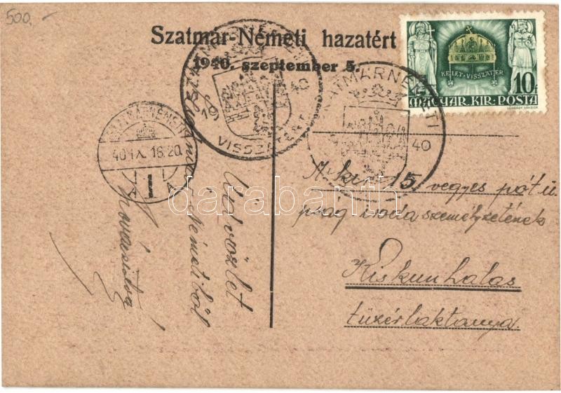Beschreibung: Szatmárnémeti, Satu Mare; Református leánygimnázium / girl grammar school "1940 Szatmárnémeti visszatért" So. Stpl