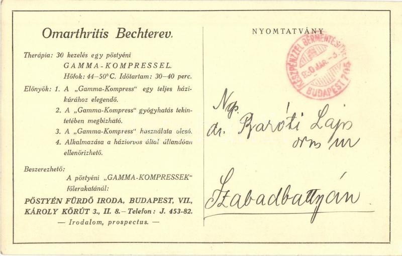Pöstyénfürdő, Kúpele Piestany; gyógykezelés Gamma-Kompressel. reklámla... https://www.darabanth.com/de/314-Fernauktion/314.0/Ansichtskarten/Slowakei~400007/Postyenfurdo-Kupele-Piestany-gyogykezeles-Gamma-Kompressel-reklamlap-healing-treatment-~II1723490