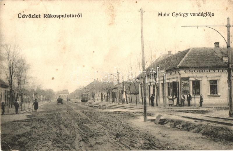 Budapest XV. Rákospalota, Fő út, Muhr György vendéglője, Csörgey étter... https://www.darabanth.com/de/314-Fernauktion/314.0/Ansichtskarten/Ungarn~400005/Budapest-XV-Rakospalota-Fo-ut-Muhr-Gyorgy-vendegloje-Csorgey-etterem-villamos-Fischer-~II1720841