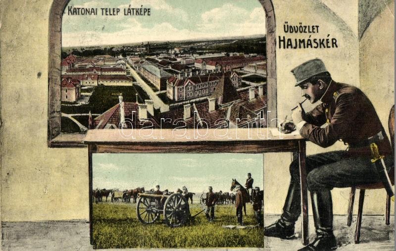 Hajmáskér, Katonai telep, tüzérek ágyúval. Levelet író katona montázsl... https://www.darabanth.com/de/314-Fernauktion/314.0/Ansichtskarten/Ungarn~400005/Hajmasker-Katonai-telep-tuzerek-agyuval-Levelet-iro-katona-montazslap-EK~II1722684