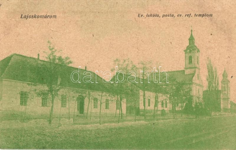 Lajoskomárom, Evangélikus iskola és templom, posta hivatal. Stinner Mi... https://www.darabanth.com/de/314-Fernauktion/314.0/Ansichtskarten/Ungarn~400005/Lajoskomarom-Evangelikus-iskola-es-templom-posta-hivatal-Stinner-Mihaly-kiadasa~II1722949