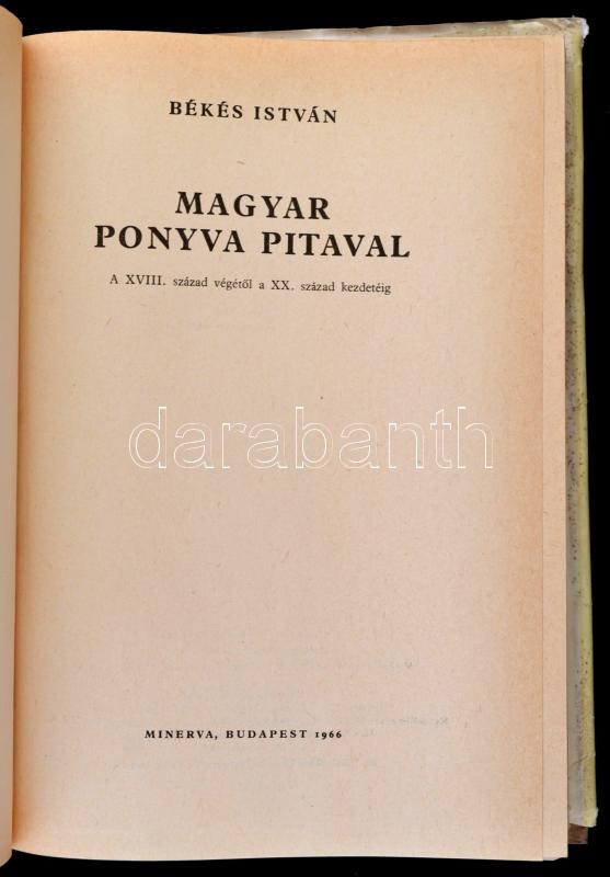 Békés István: Magyar ponyva pitaval. A XVIII. század végétől a XX. század kezdetéig. Bp., 1966, Minerva. Kiadói egészvászon-kötésben, kiadói papír védőborítóban, kissé szakadozott papírborítóval.