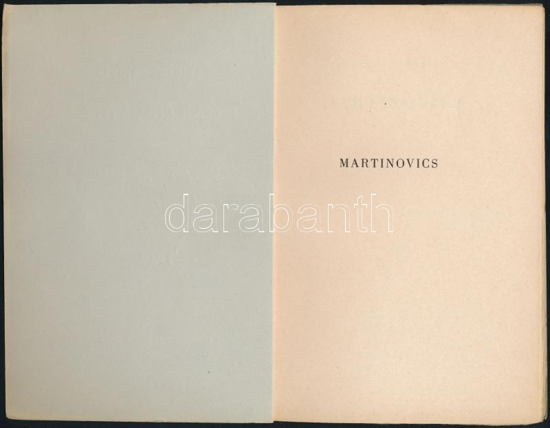 Karinthy Frigyes: Martinovics. Ascher Oszkár utószavával. Hincz Gyula szövegközti rajzaival. Bp., 1947, Új Idők (Singer és Wolfner), 30 p. Kiadói rajzos papírborítóban, felvágatlan lapokkal, jó állapotban.