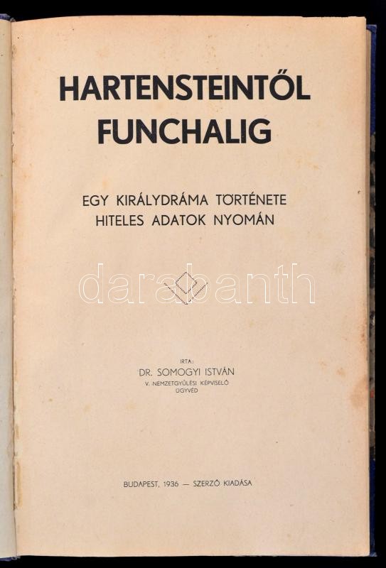 Beschreibung: Dr. Somogyi István: Hartensteintől Funchalig. Egy királydráma története hiteles adatok nyomán. Bp., 1936, Szerzői kiadás, (Ifj. Kellner Ernő-ny.) Átkötött félvászon-kötés, foltos borítóval.