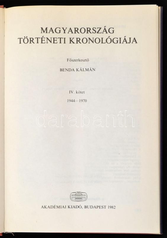 Magyarország történeti kronológiája I-IV. kötet. Szerk.: Benda Kálmán.... https://www.darabanth.com/de/314-Fernauktion/314.0/Bucher/Bucher-Geschichte~100034/Magyarorszag-torteneti-kronologiaja-I-IV-kotet-Szerk-Benda-Kalman-Bp-1981-1982-AkadC3~II1722887
