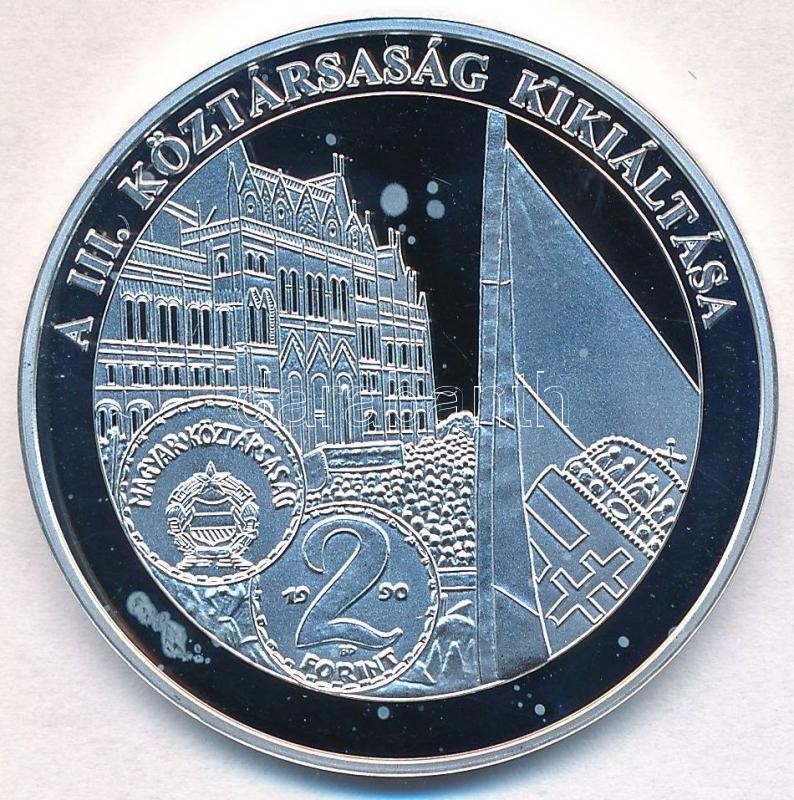 Beschreibung: DN "A magyar pénz krónikája - A III. Köztársaság kikiáltása" Ag emlékérem tanúsítvánnyal (20g/0.999/38,61mm) T:PP