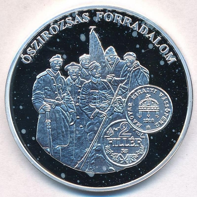 Beschreibung: DN "A magyar pénz krónikája - Őszirózsás forradalom" Ag emlékérem tanúsítvánnyal (20g/0.999/38,61mm) T:PP