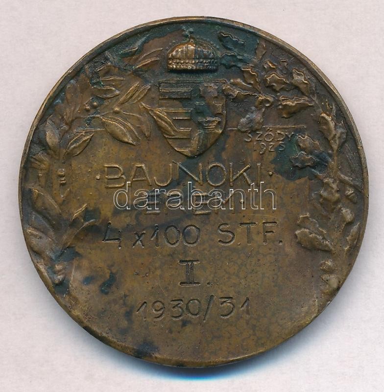 Beschreibung: Sződy Szilárd (1878-1939) 1925. "Főiskolai Bajnokságok Budapest 1930 / Bajnoki Érem" Br díjérem, gravírozva "4x100 STF II. 1930/1931" (42mm) T:2- ph., fülhiány