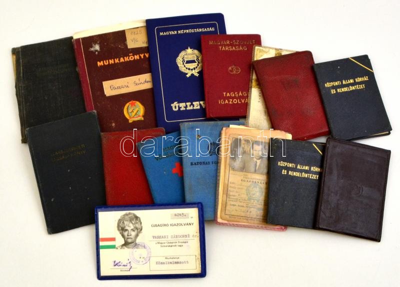 Beschreibung: cca 1940-1960 16 db vegyes régi igazolvány, útlevél,