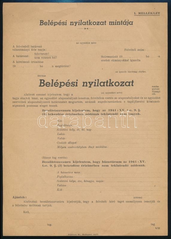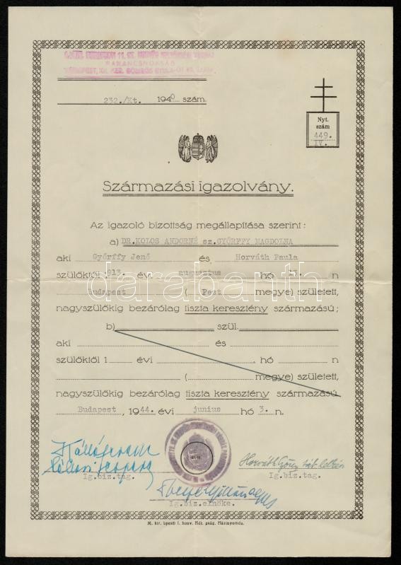 cca 1941-1944 2 db származásigazolással kapcsolatok okmány, az egyik k... https://www.darabanth.com/de/315-Fernauktion/315.0/Andere-Sammelgebiete/Dokument~500019/cca-1941-1944-2-db-szarmazasigazolassal-kapcsolatok-okmany-az-egyik-kitoltetlen~II1728653