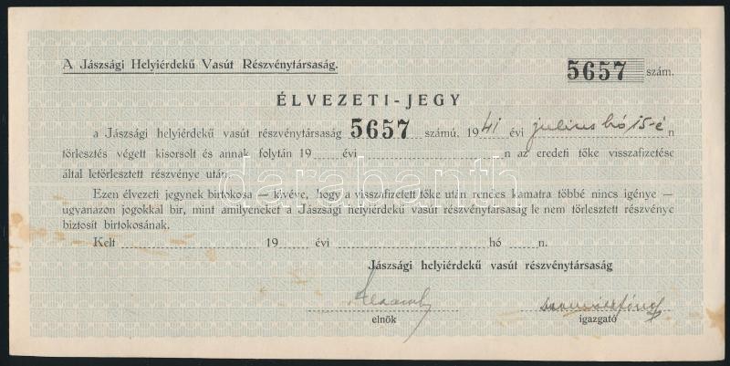 1911 A Jászsági Helyi Érdekű Vasút engedélyokmánya. 26p + Élvezeti jeg... https://www.darabanth.com/de/315-Fernauktion/315.0/Andere-Sammelgebiete/Drucksachen~500034/1911-A-Jaszsagi-Helyi-Erdeku-Vasut-engedelyokmanya-26p-plus-Elvezeti-jegy~II1724877