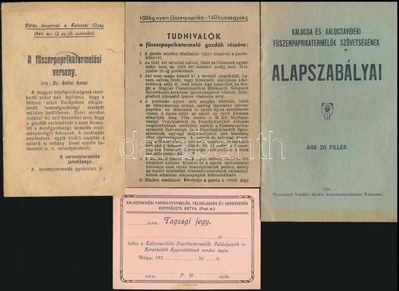 1934 Kalocsa és Kalocsavidéki fűszerpaprikatermelők Szövetségének alap... https://www.darabanth.com/de/315-Fernauktion/315.0/Andere-Sammelgebiete/Drucksachen~500034/1934-Kalocsa-es-Kalocsavideki-fuszerpaprikatermelok-Szovetsegenek-alapszabalyai-16p-plus-tag~II1724874