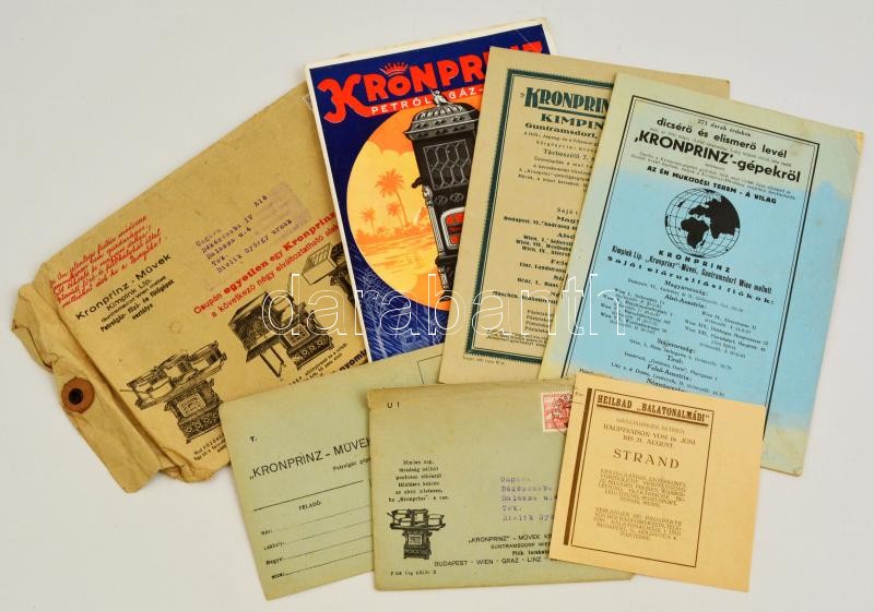 Beschreibung: 1935 A Kornprinz művek kályha és öntöttvas szerelvények gyárának színes reklámkatalógusa, valamint egyéb reklám anyagai