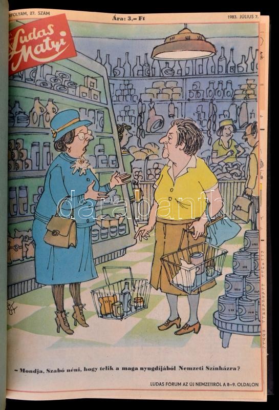 1983 A Ludas Matyi c. szatirikus hetilap 1983-es, XXXIX. évfolyamának ... https://www.darabanth.com/de/315-Fernauktion/315.0/Andere-Sammelgebiete/Drucksachen~500034/1983-A-Ludas-Matyi-c-szatirikus-hetilap-1983-es-XXXIX-evfolyamanak-szamai-egybekotve-Teljes-~II1708338