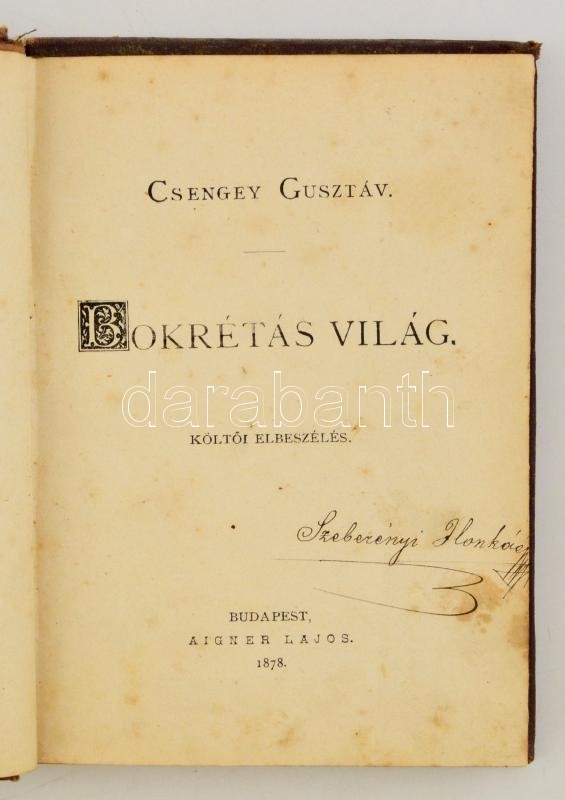 Csengey Gusztáv: Bokrétás világ. Költői elbeszélés. Bp., 1878. Aigner ... https://www.darabanth.com/de/315-Fernauktion/315.0/Andere-Sammelgebiete/Drucksachen~500034/Csengey-Gusztav-Bokretas-vilag-Koltoi-elbeszeles-Bp-1878-Aigner-Laj-Korabeli-kopott-~II1725419