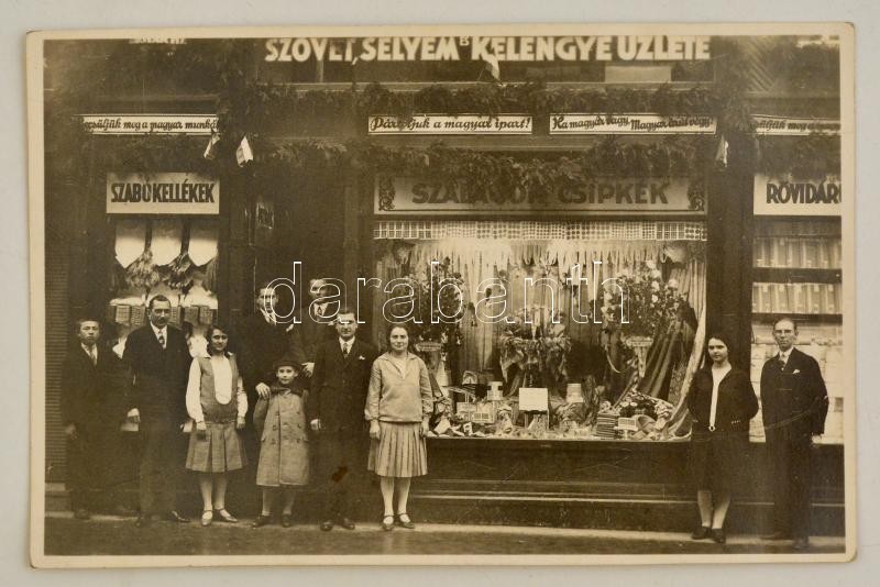 1928 Debrecen, szövet és kelengye üzlet fényképe. Fotólap https://www.darabanth.com/de/315-Fernauktion/315.0/Andere-Sammelgebiete/Foto~2500018/1928-Debrecen-szovet-es-kelengye-uzlet-fenykepe-Fotolap~II1725969