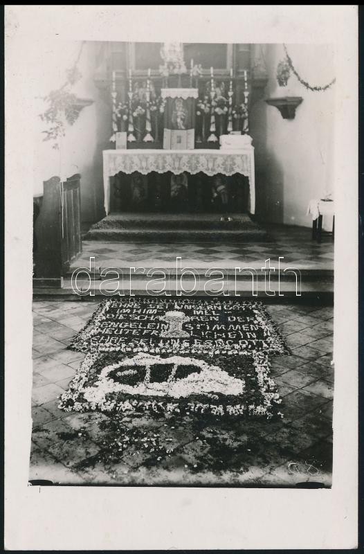 1939 Mogyoród, A templom oltára, előtte virágból kirakott irredenta je... https://www.darabanth.com/de/315-Fernauktion/315.0/Andere-Sammelgebiete/Foto~2500018/1939-Mogyorod-A-templom-oltara-elotte-viragbol-kirakott-irredenta-jelkeppel-fotolap-14x9-~II1727438