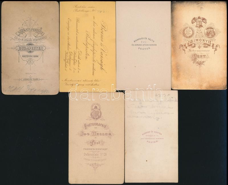 cca 1860-1880 6 db vizitkártya klf magyar fotósok műterméből https://www.darabanth.com/de/315-Fernauktion/315.0/Andere-Sammelgebiete/Foto~2500018/cca-1860-1880-6-db-vizitkartya-klf-magyar-fotosok-mutermebol~II1730319
