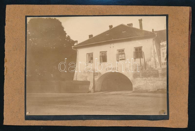 Beschreibung: cca 1900 Az eperjesi (Felvidék) kórház bejárata, albumlapra ragasztott fotó, 7,5x10,5 cm / Presov, hospital