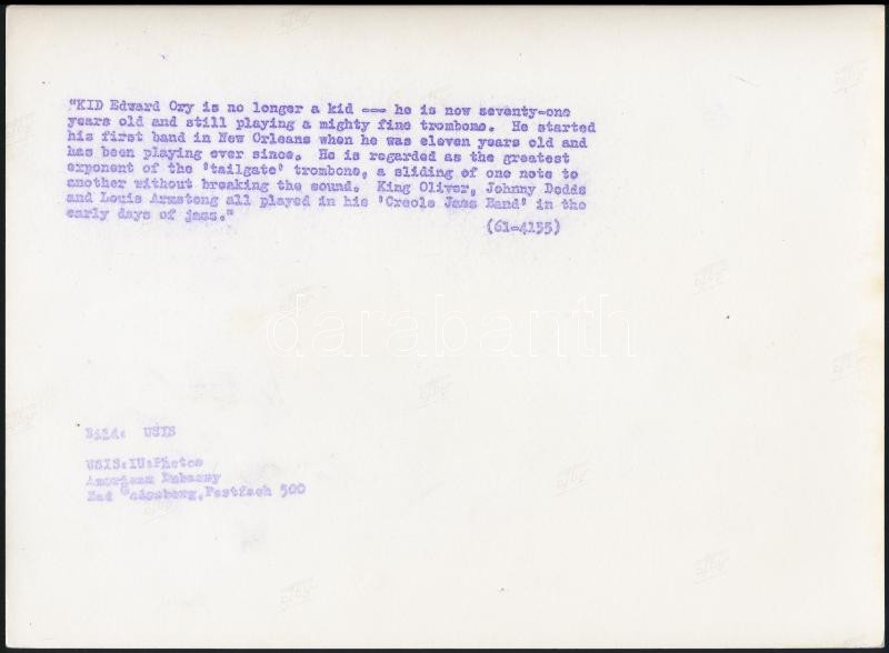 id Edward Ory és a King Olivers Creole Jazz Band 2 db feliratozott saj... https://www.darabanth.com/de/315-Fernauktion/315.0/Andere-Sammelgebiete/Foto~2500018/id-Edward-Ory-es-a-King-Olivers-Creole-Jazz-Band-2-db-feliratozott-sajtofoto-2-press-photos-18x~II1725136