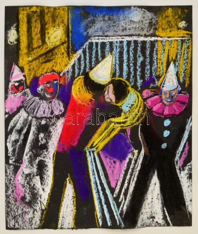 Beschreibung: Jándi jelzéssel: Ölelkező bohócok. Pasztell, papír, 42×35 cm