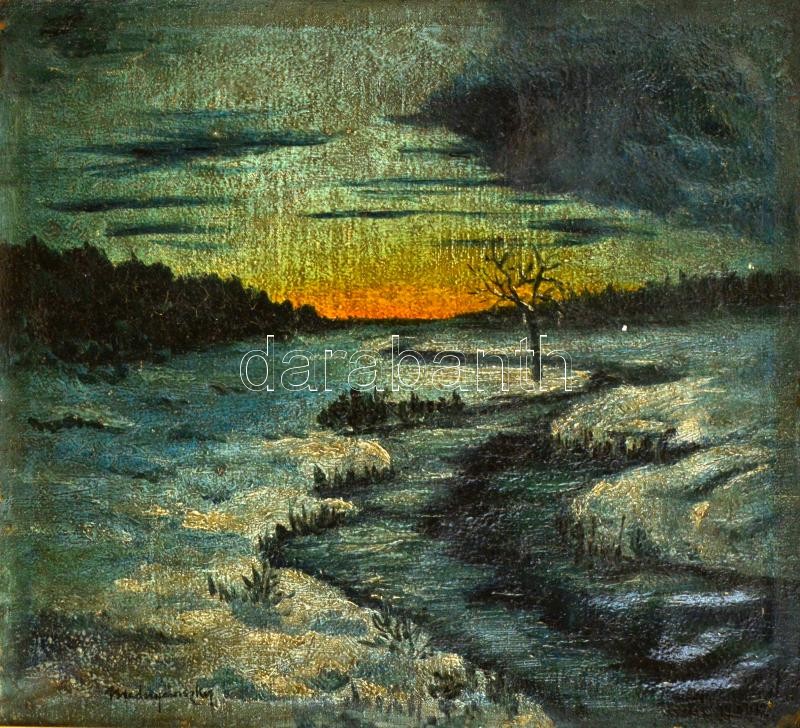 Beschreibung: Mednyánszky jelzéssel: Fagyos táj. Olaj, vászon-karton, keretben, 37×43 cm
