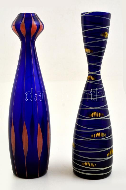 2 db festett kék üvegváza, hibátlanok, m: 25,5 cm https://www.darabanth.com/de/315-Fernauktion/315.0/Andere-Sammelgebiete/Glaser~500010/2-db-festett-kek-uvegvaza-hibatlanok-m-25-5-cm~II1726661
