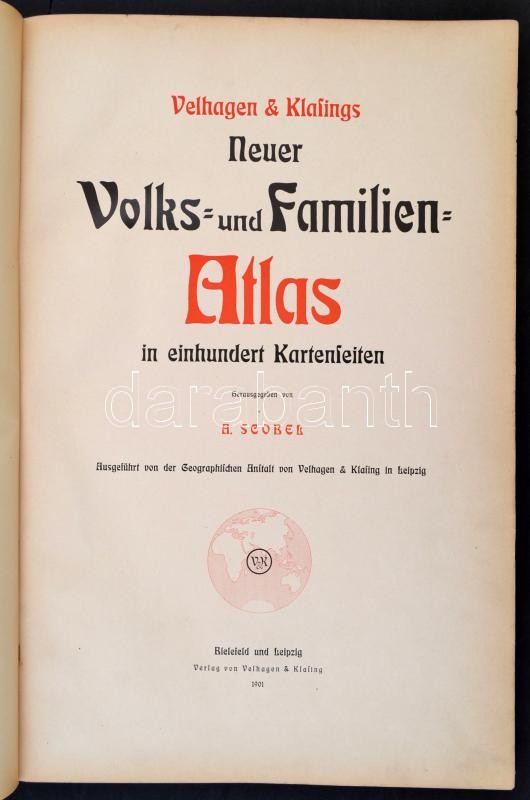 Beschreibung: Velhagen & Klasings Neuer Volks- und Familienatlas. Szerk.: Scobel, A[lbert]. Bielefeld - Leipzig, 1901, Verlag von Velagen & Klasing. Kopott vászonkötésben, egyébként jó állapotban.