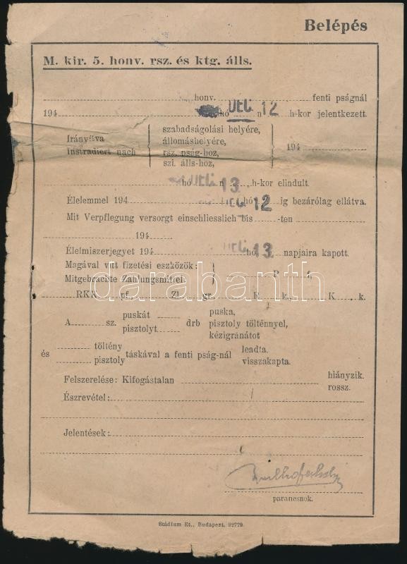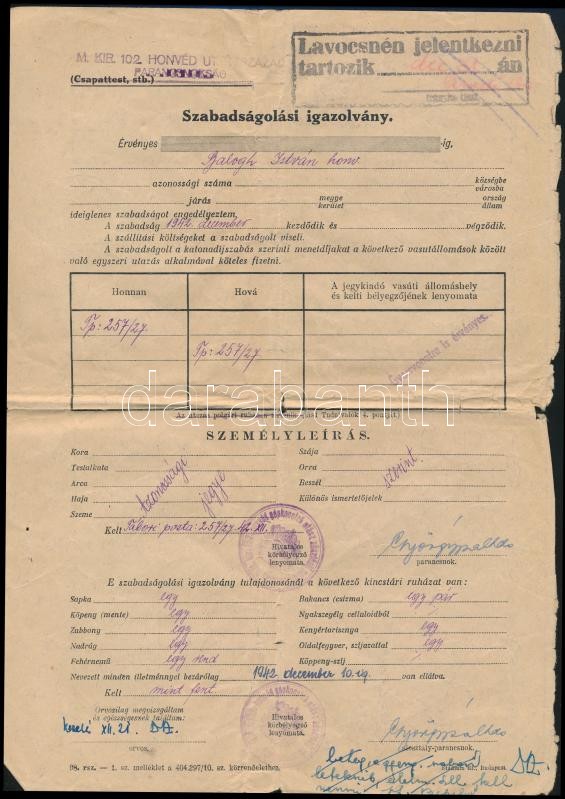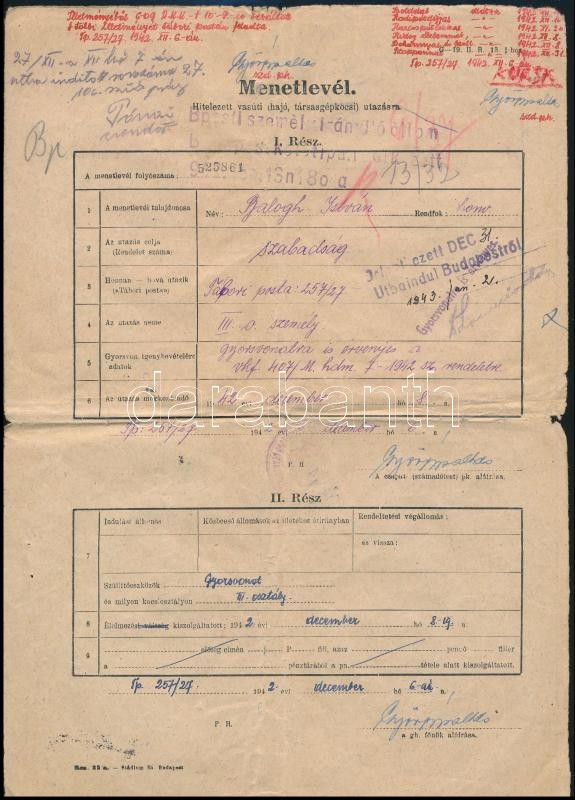 1942 Katonai menetlevél hitelezett vasúti (hajó, társasgépkocsi) utazá... https://www.darabanth.com/de/315-Fernauktion/315.0/Andere-Sammelgebiete/Militaria~2500021/1942-Katonai-menetlevel-hitelezett-vasuti-hajo-tarsasgepkocsi-utazasra-plus-szabadsagolasi-i~II1727863