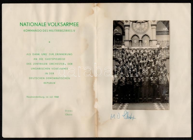 1968 a Magyar Katonazenekar tagjainak vendégfellépése az NDK-ban3 db f... https://www.darabanth.com/de/315-Fernauktion/315.0/Andere-Sammelgebiete/Militaria~2500021/1968-a-Magyar-Katonazenekar-tagjainak-vendegfellepese-az-NDK-ban3-db-foto-plus-1-db-foltos-emlekla~II1725716