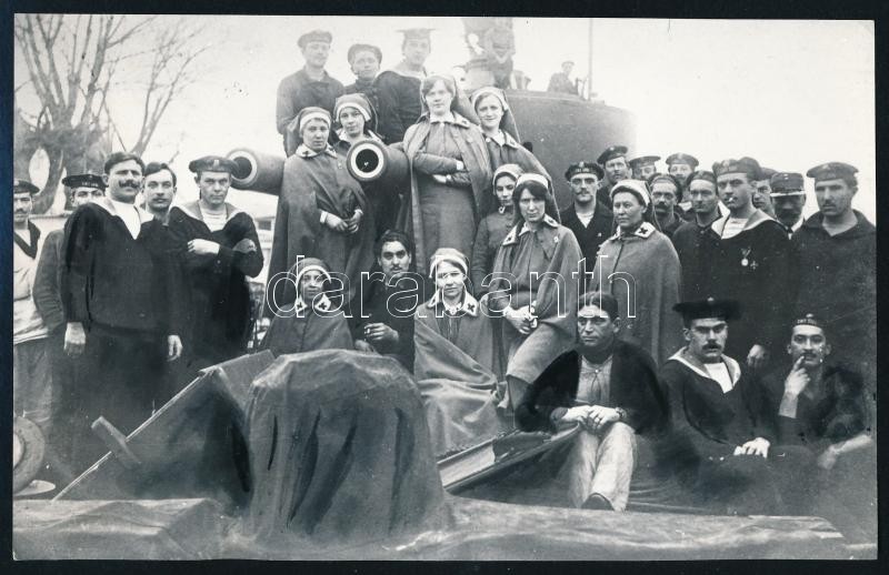 Beschreibung: A Sava monitor, a Dunai Flottila hajójának személyzete vöröskeresztes ápolókkal, az 1980-as években eredeti negatívról előhívott másolat, 11×17,5 cm