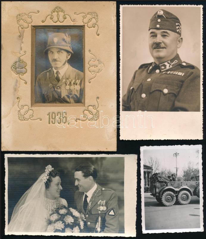 Beschreibung: cca 1930-1940 12 db vegyes katonafotó, egy részük hátulján feliratozva, különböző méretben