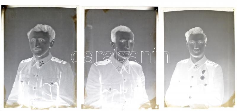 Beschreibung: cca 1940-1945 II. világháborús repülős tisztek fotói, 3 db fotónegatív, 11x8 cm