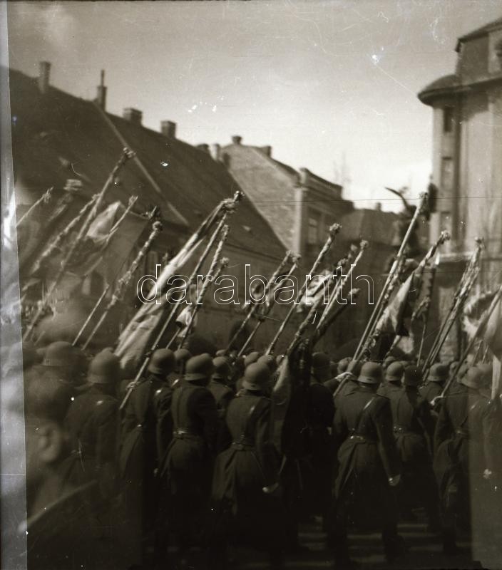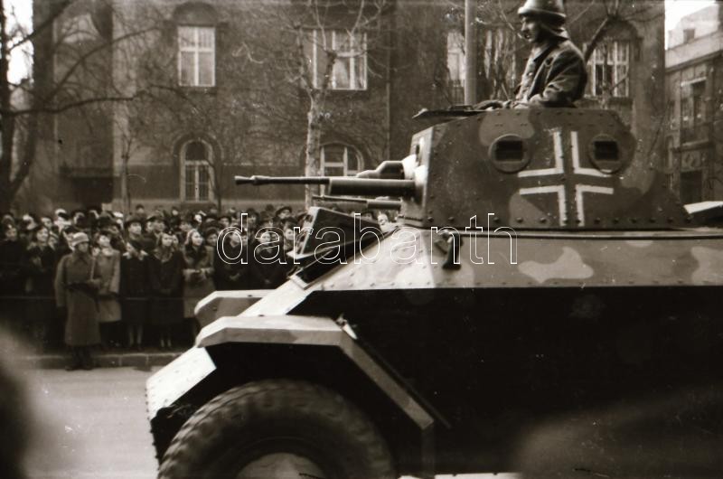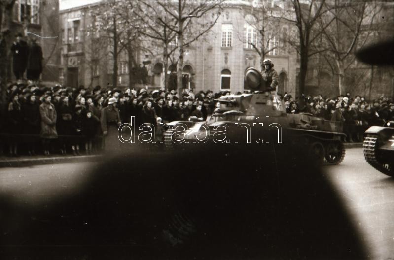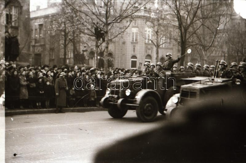 cca 1944 Katonai szállító járművek, katonai felvonulás zászlókkal Buda... https://www.darabanth.com/de/315-Fernauktion/315.0/Andere-Sammelgebiete/Militaria~2500021/cca-1944-Katonai-szallito-jarmuvek-katonai-felvonulas-zaszlokkal-Budapesten-4-db-szabadon-~II1724861