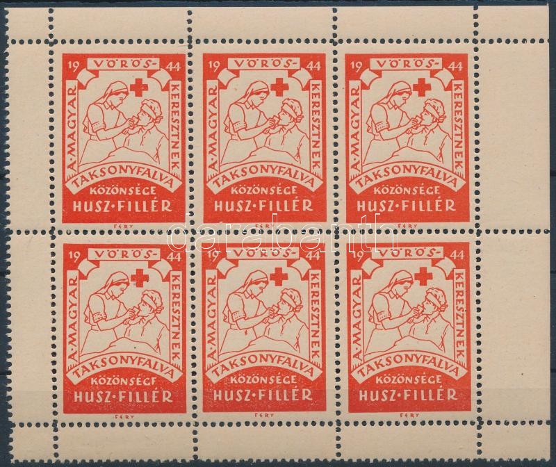 Beschreibung: 1944 Vöröskereszt Taksonyfalva segélybélyeg kisív