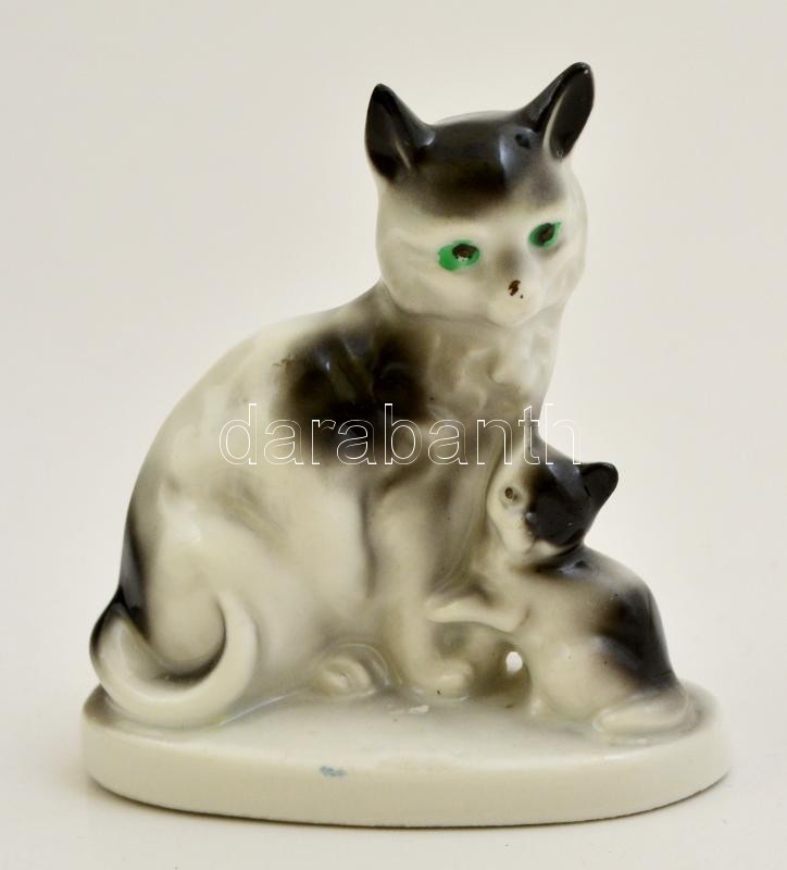 Beschreibung: Cicamama a kicsinyével, kézzel festett, jelzés nélkül, kopott, m: 7 cm