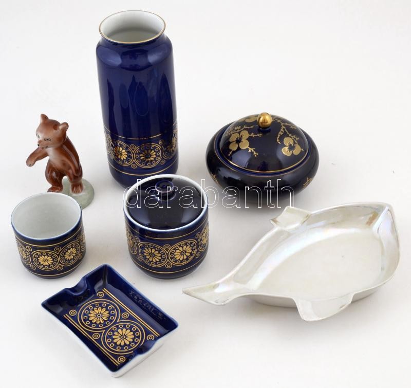 Beschreibung: Hollóházi porcelán tárgyak és figura, matricás, jelzett, hibátlan, összesen: 7 db