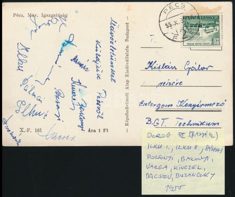 1955 a Dorogi Bányászok tagjainak (Pálmai, Pozsonyi, Buzánszky, stb.) ... https://www.darabanth.com/de/315-Fernauktion/315.0/Andere-Sammelgebiete/Signatur~500025/1955-a-Dorogi-Banyaszok-tagjainak-Palmai-Pozsonyi-Buzanszky-stb-alairasai-levelezolapo~II1730059