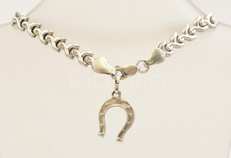 Beschreibung: Ezüst(Ag) fantáziaszemes karkötő, szerencsepatkó függővel, jelzett, h: 1,5x2,2 cm, nettó: 5,9 g