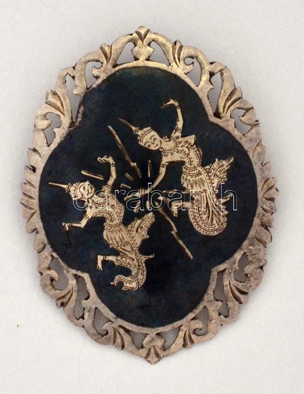 Beschreibung: Ezüst(Ag) fekete zománccal díszített bross, jelzett, 5x4 cm, bruttó: 8,7 g