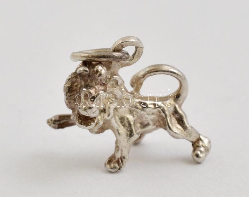 Beschreibung: Ezüst(Ag) plasztikus oroszlán függő, jelzett, 1,8x1,7 cm, nettó: 2,7 g