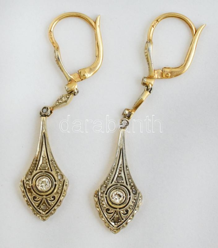 cca 1940 Arany (14 K) jelzett fülbevaló, brill kővel fehér arany fogla... https://www.darabanth.com/de/315-Fernauktion/315.0/Juwelen/Juwelen~500016/cca-1940-Arany-14-K-jelzett-fulbevalo-brill-kovel-feher-arany-foglalatban-h3-cm-brutto3-~II1731170