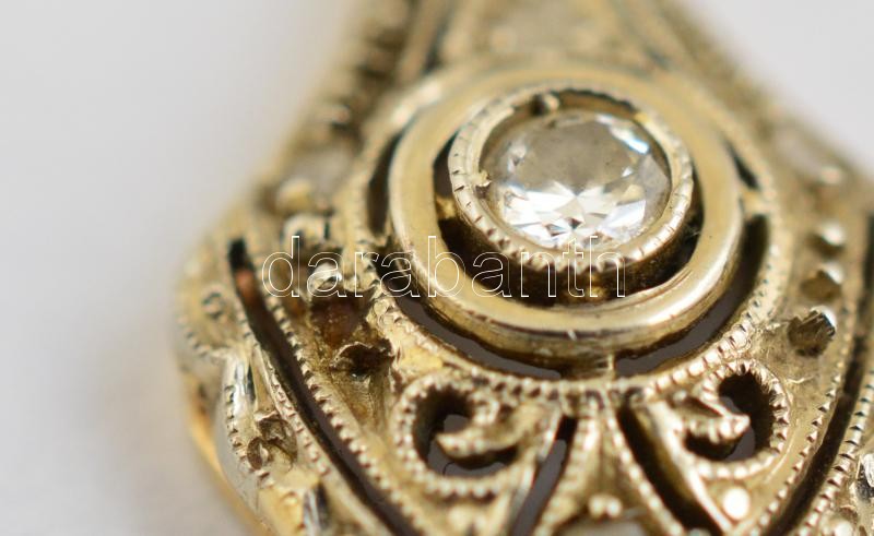 Beschreibung: cca 1940 Arany (14 K) jelzett fülbevaló, brill kővel fehér arany foglalatban, h:3 cm, bruttó:3,41 g
